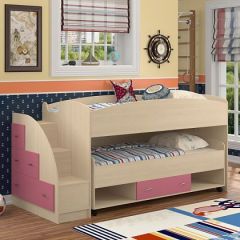 Кровать-чердак "Дюймовочка-4.3"  Дуб молочный/Розовый | фото
