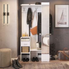 «Агата» создана для Вашей прихожей – Вы можете повесить одежду и сумку на металлические крючки, шляпки положить на полку сверху, нужные мелочи – в выдвижной ящик. На открытых полках можно разместить зонты, перчатки и шарфы. Лицевая панель с зеркалом во весь рост обеспечит комфорт и уют Вашей прихожей. «Агата» - стильная, функциональная, занимает минимум пространства.