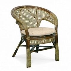 Кресло из натурального ротанга с подушкой и плетеной спинкой Пеланги.