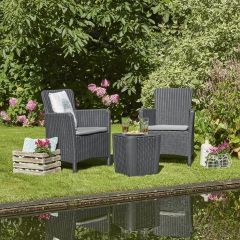 Trenton Balcony - это балконный гарнитур с округлой ротанговой фактурой поверхности, в состав которого входят два кресла и 2-функциональный столик Luzon с возможностью хранения разных предметов и садового инвентаря. Должным образом спрофилированные спинки кресел и мягкие подушки сделают моменты отдыха на свежем воздухе очень приятными. Простой в чистке мебельный гарнитур прочен и устойчив к нежелательному воздействию погодных условий и ультрафиолетовых лучей. Очень прост в монтаже. Доступен в классической цветовой гамме.
